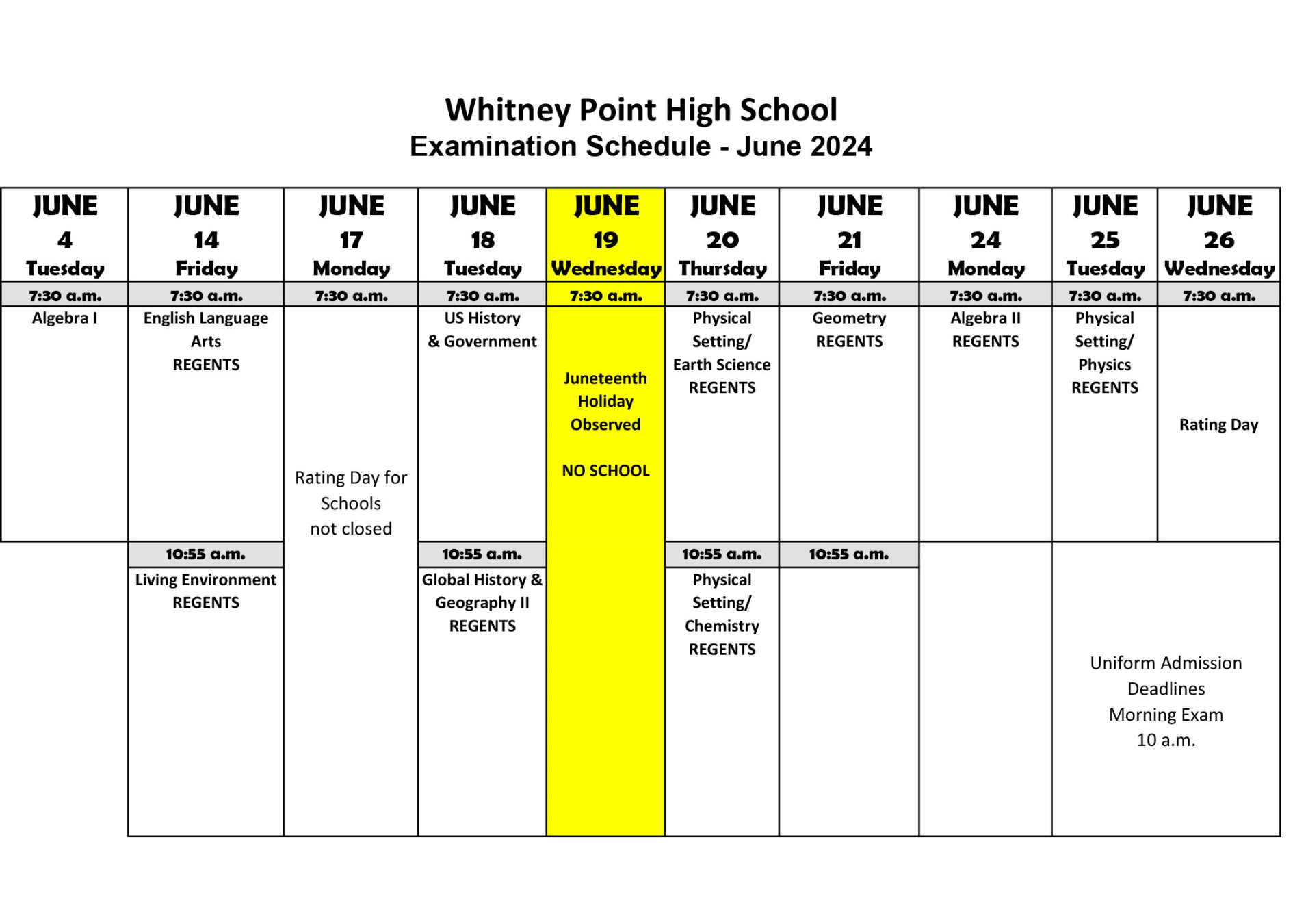 Regents Exams Whitney Point High School June Regents Exam Schedule New Rochelle High School
