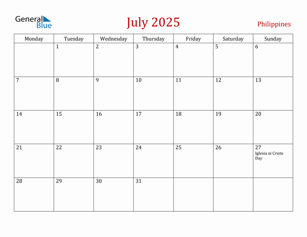 July Philippines Monthly Calendar with Holidays July Calendar Templates for Word, Excel and PDF