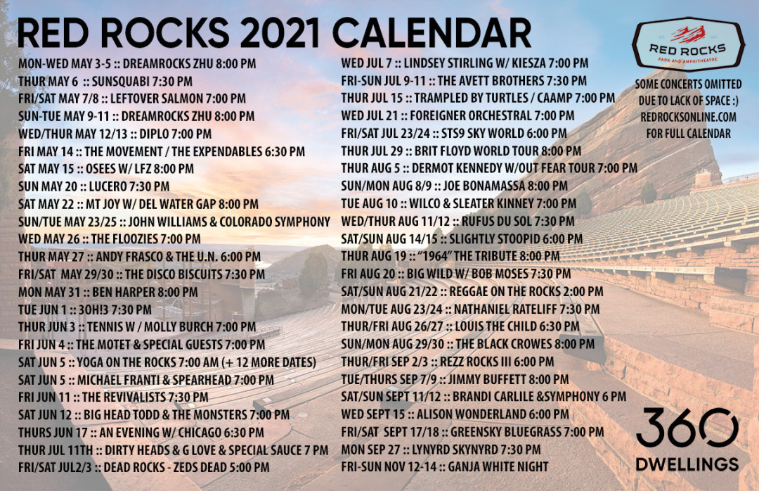Red Rocks Concert Schedule (Infographic) & Our Best Tips Red Rocks Park & Amphitheatre – Official Website