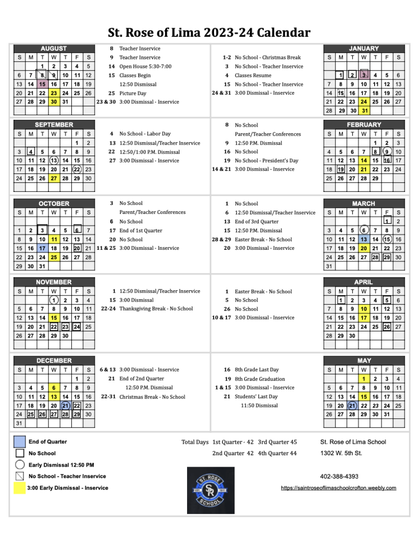 Academic Calendar St – Academic Calendar – School of Saint Mary Academic Calendar St
